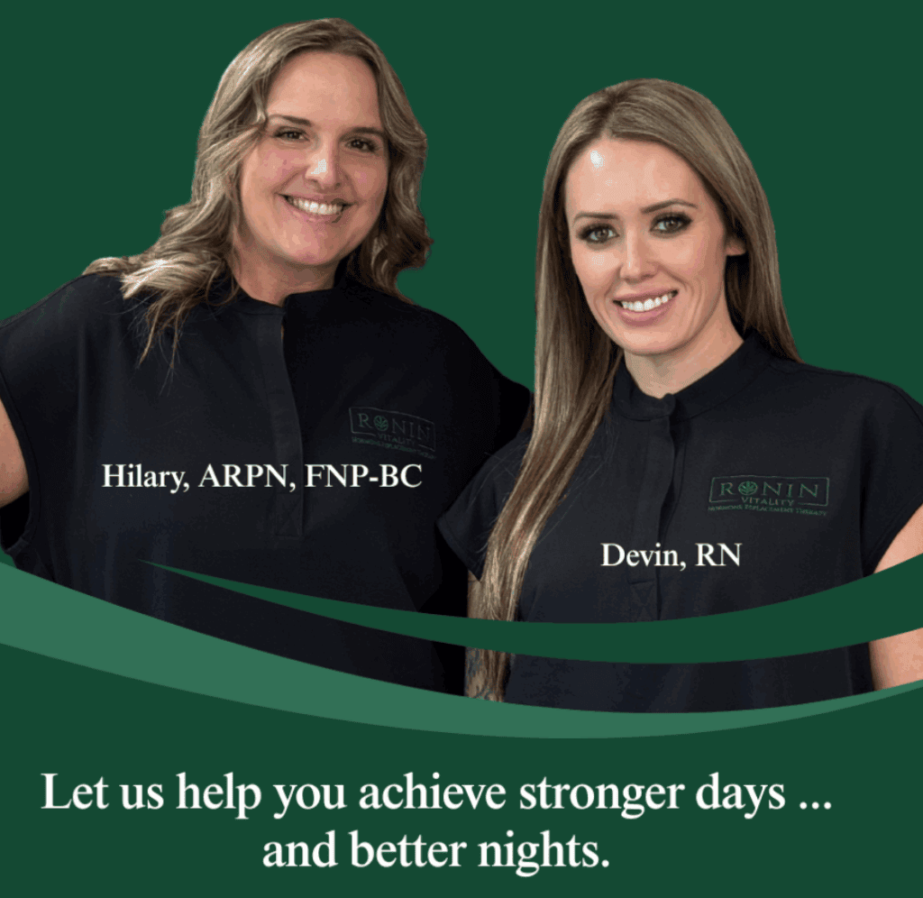 We don’t rush through appointments or take a one-size-fits-all approach. We take our time, listen carefully, and craft every treatment plan with intention, care, and connection. From personalized hormone therapy and advanced vitamin support to wellness treatments and lifestyle guidance, we’re here to walk alongside you with both expertise and empathy. At Ronin Vitality, your well-being isn’t just our job: it’s our purpose.
